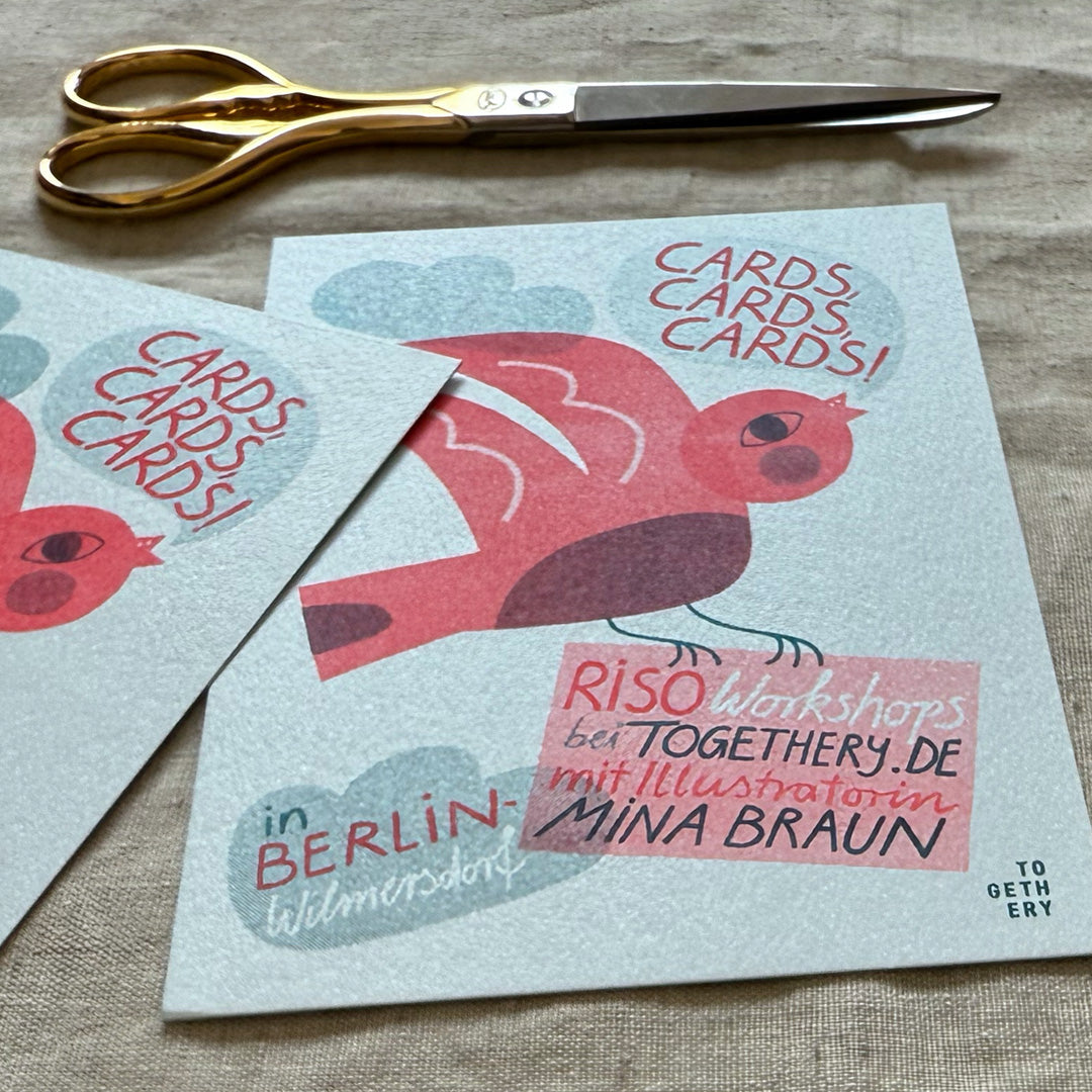 GO GREEN TOGETHERY – das ist unser Motto! In unserem Studio im Güntzelkiez entwickeln wir feine Papierwaren, die wir unter der Marke TOGETHERY herausbringen. Unser Kennzeichen ist die Risographie – eine besonders nachhaltige Druckmethode, für die wir Tinte aus Pflanzenfarbe, feinstes Naturpapier und viel Liebe verwenden.
