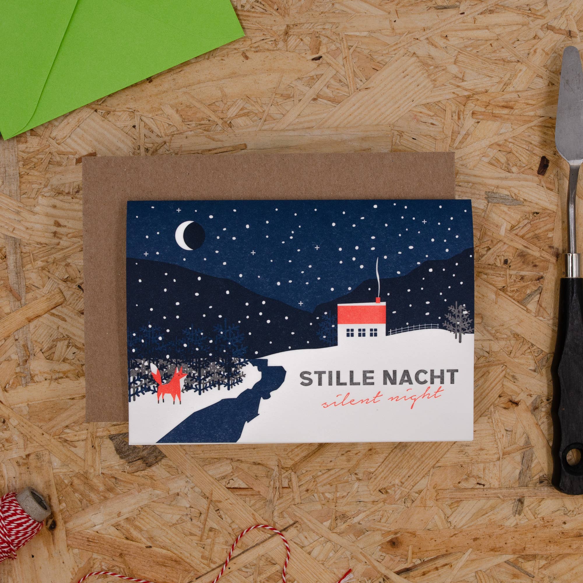 Stille Nacht / Letterpress Grusskarte mit Umschlag