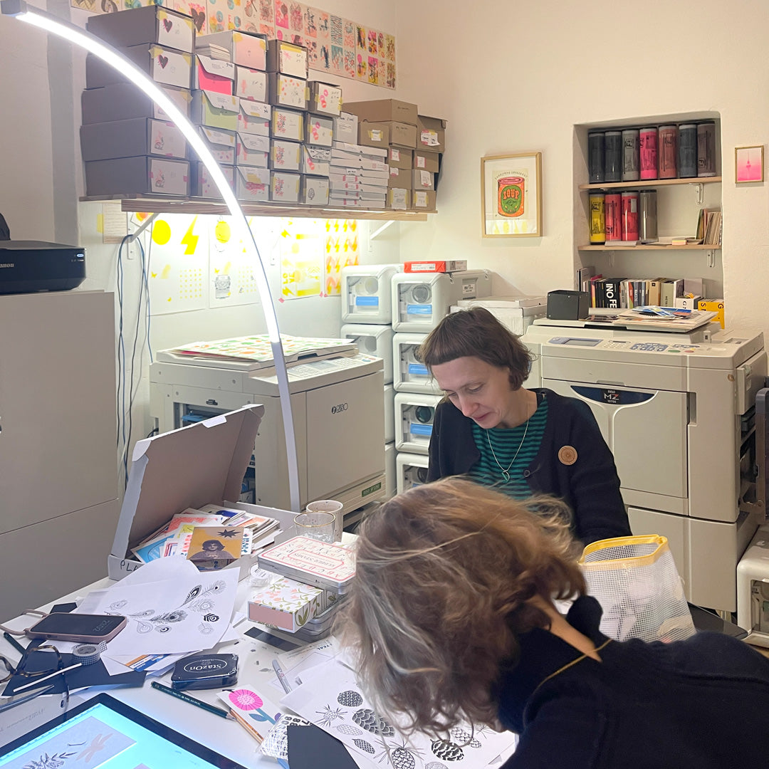 Nach einer kurzen Einführung in den Risographie-Druck und seine Besonderheiten gestaltest du dein eigenes zweifarbiges Motiv mit analogen Techniken. Ob du lieber zeichnest oder mit Schere und Papier arbeitest – deiner Kreativität sind keine Grenzen gesetzt.
