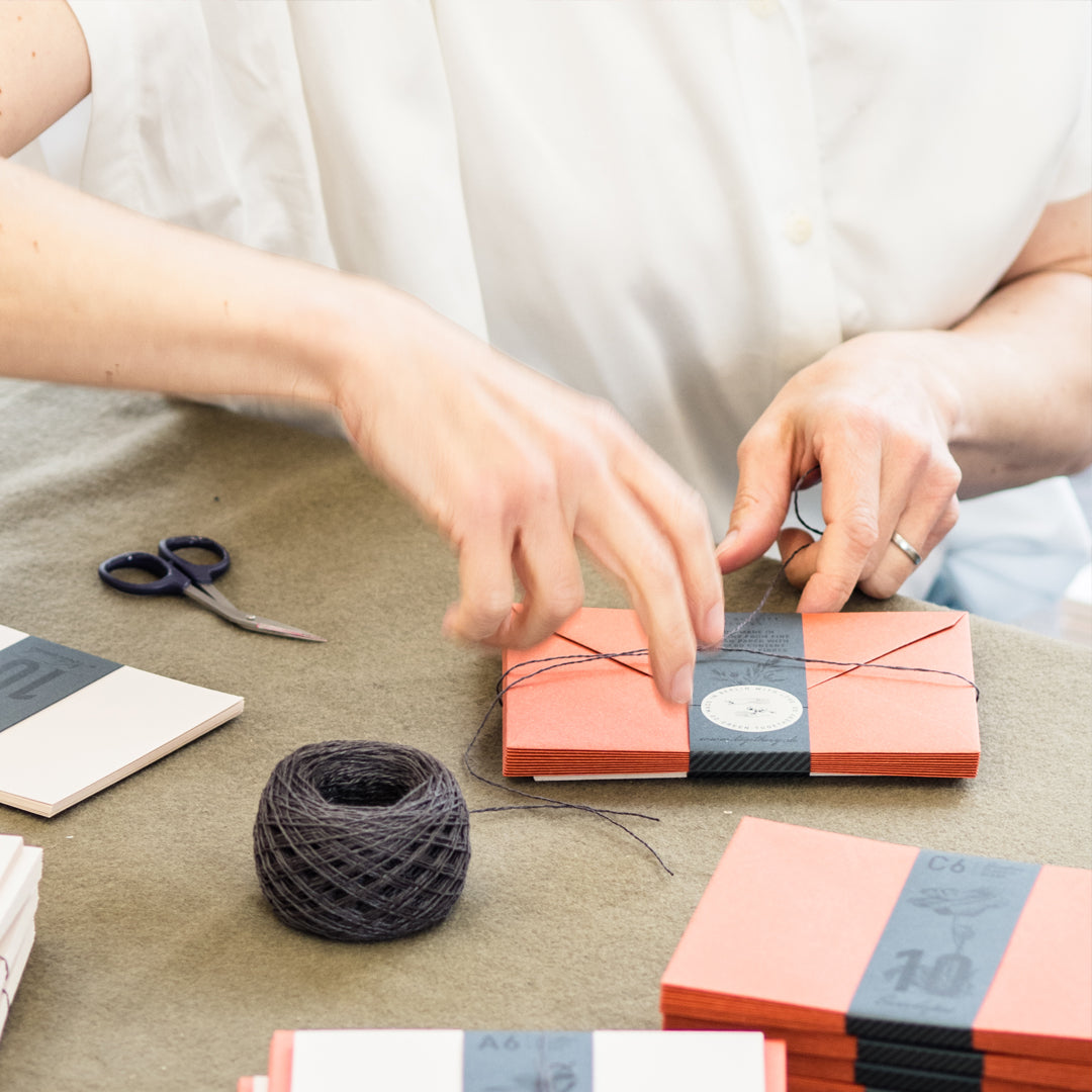 Bereits 2017 haben wir die jeweils eigenen Labels (Feingeladen und Hungry Paper) mit gleichem Anspruch gegründet. Obwohl es viel mehr Zeit und Mühe kostet, handgefertigte Produkte herzustellen, steht bei uns die Risographie im Vordergrund. Wir lieben die satten Farben der pflanzenbasierten Riso-Tinten in Kombination mit den Papieren der Eco Love-Kollektion. Unsere sorgfältig ausgewählten, zum Teil durchgefärbten Naturpapiere haben eine angenehme Haptik und natürliche Farbgebung. Um den ökologischen Fußabdruck gering zu halten, haben wir dazu passende Briefhüllen in Deutschland fertigen lassen und arbeiten mit lokalen Betrieben zusammen.