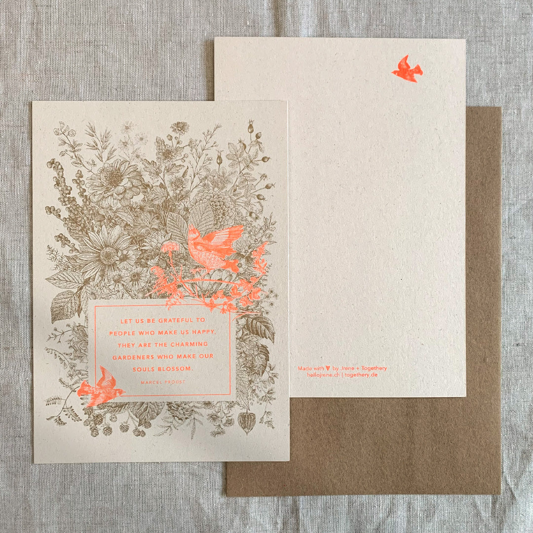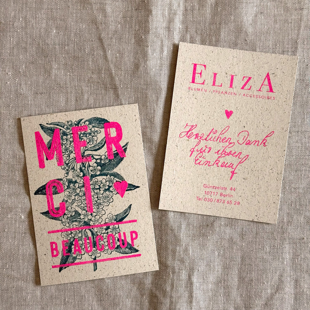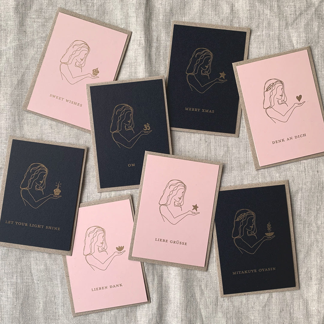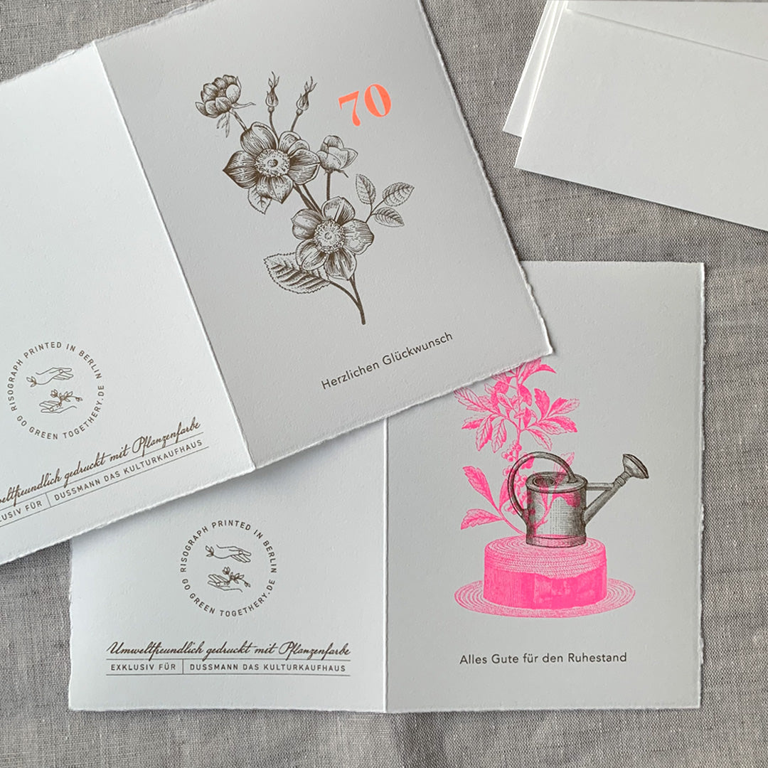 Dir gefallen unsere Karten? Wir drucken deinen Text auf die Rück- oder Innenseite – umweltfreundlich im Risographie-Druck in einer Druckfarbe deiner Wahl.